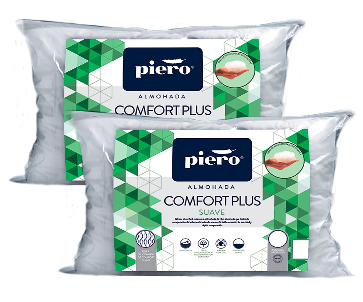 La almohada Comfort Plus posee un relleno de fibra con microesferas siliconada que permite que recupere su volumen original. Presenta una sensación muy confortable ideal para los que buscan una almohada con altura intermedia pero que sea liviana.